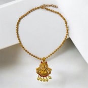 ネックレスの中心には、両翼を広げたハンサの細工と、
