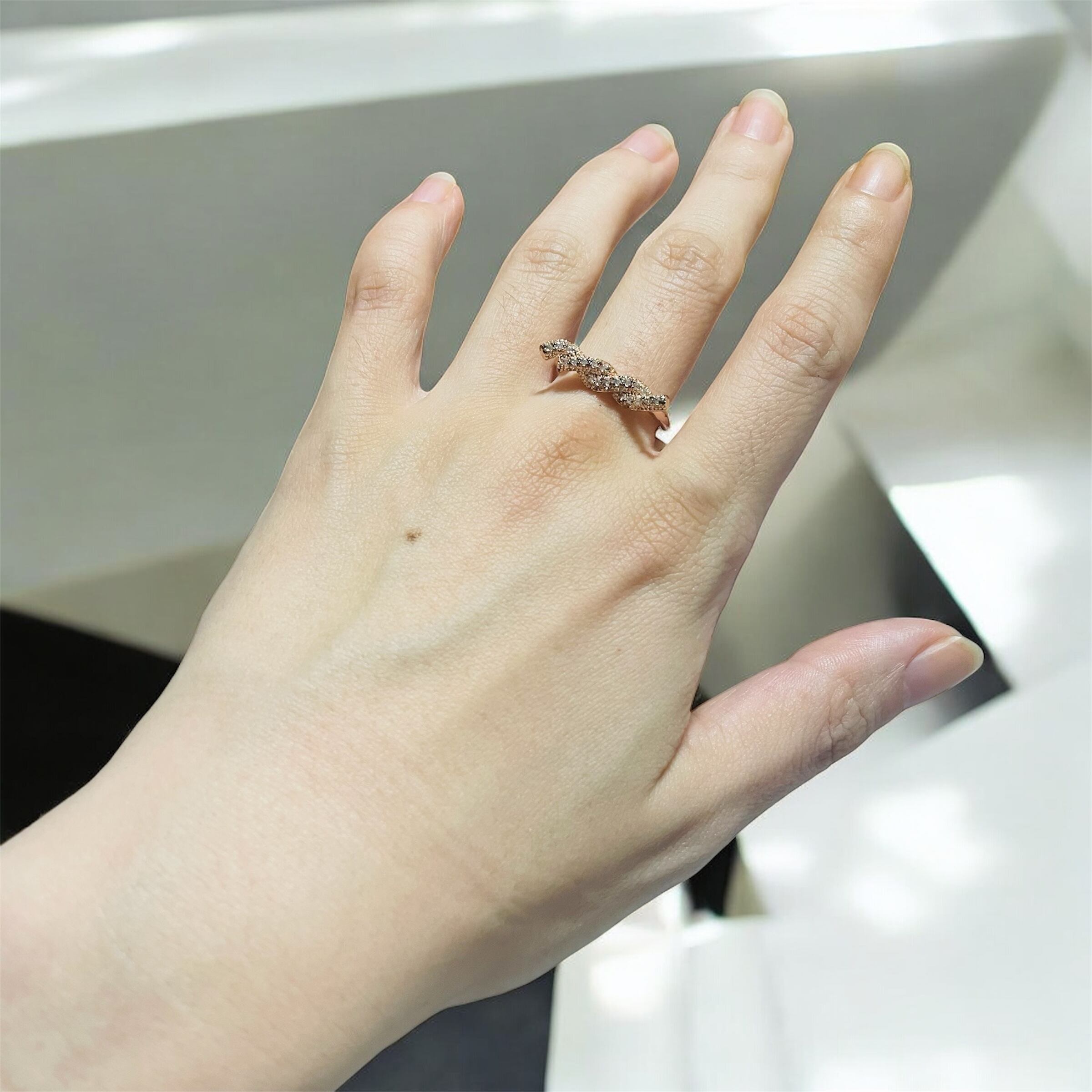 細身のリングに沿って、小粒のビジューがまっすぐに整列された、