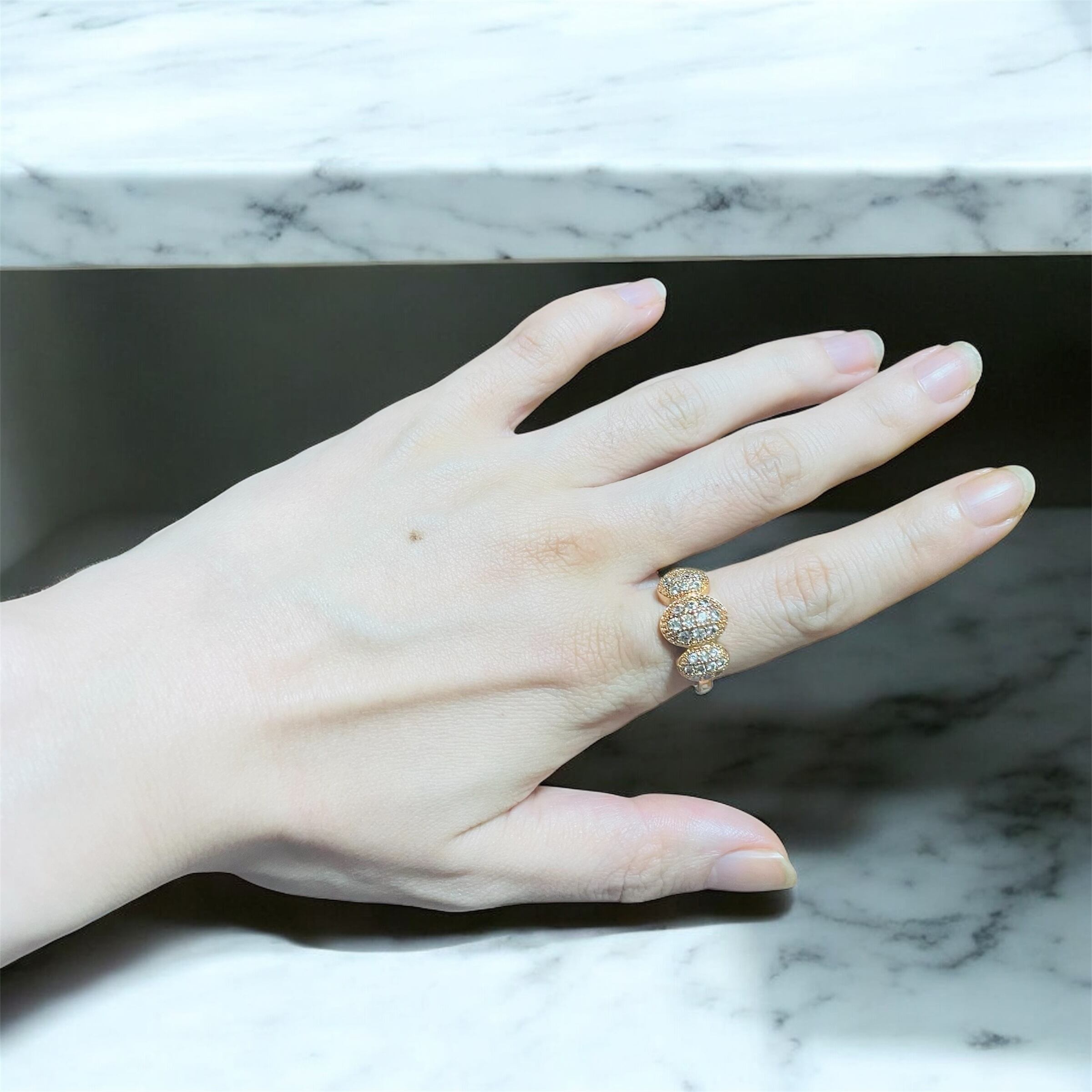 3粒のビジューが並ぶ、立体的なきらめきの指飾りです。