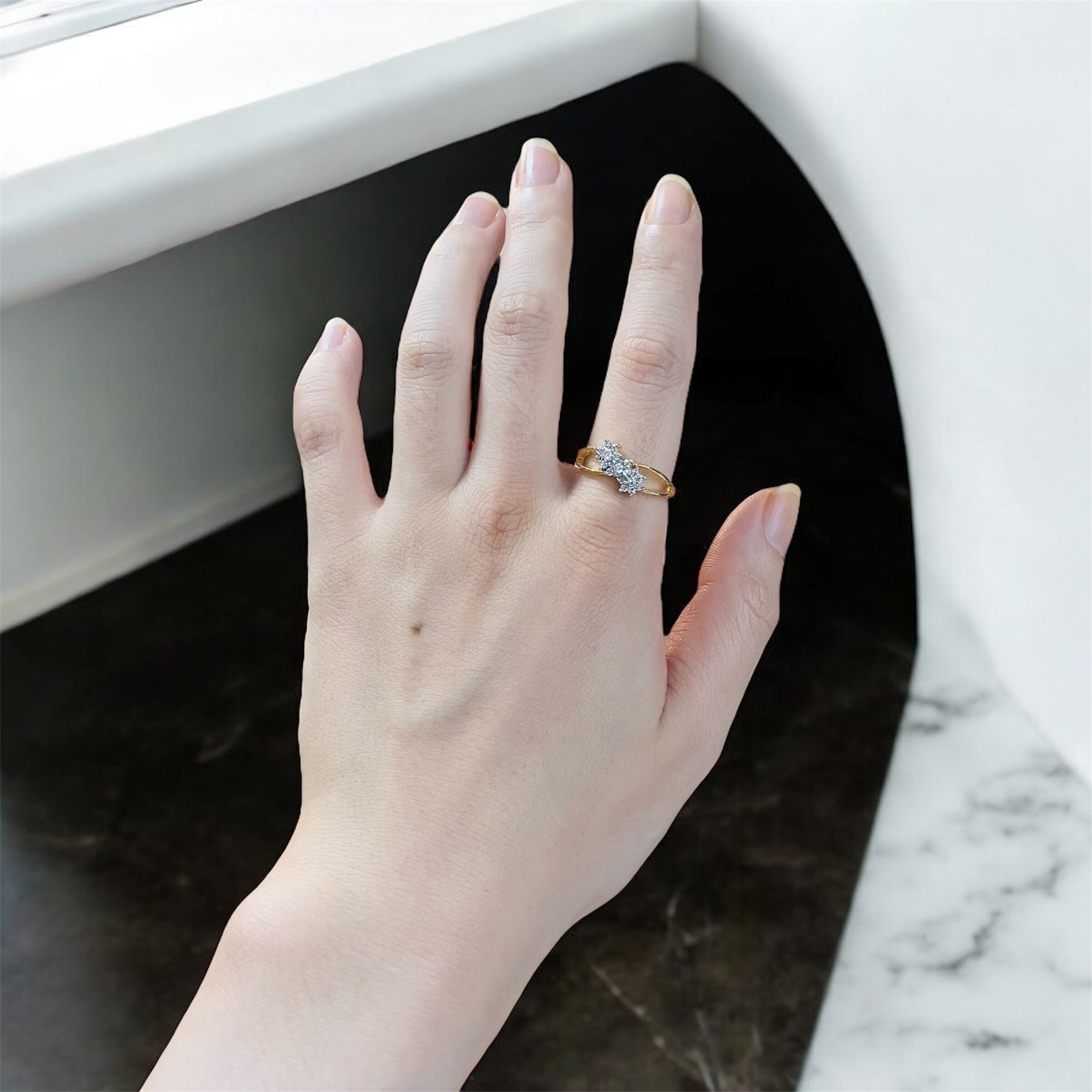 可憐な花がふたつ、そっと寄り添うようにあしらわれた、繊細で愛らしいデザインのリングです。