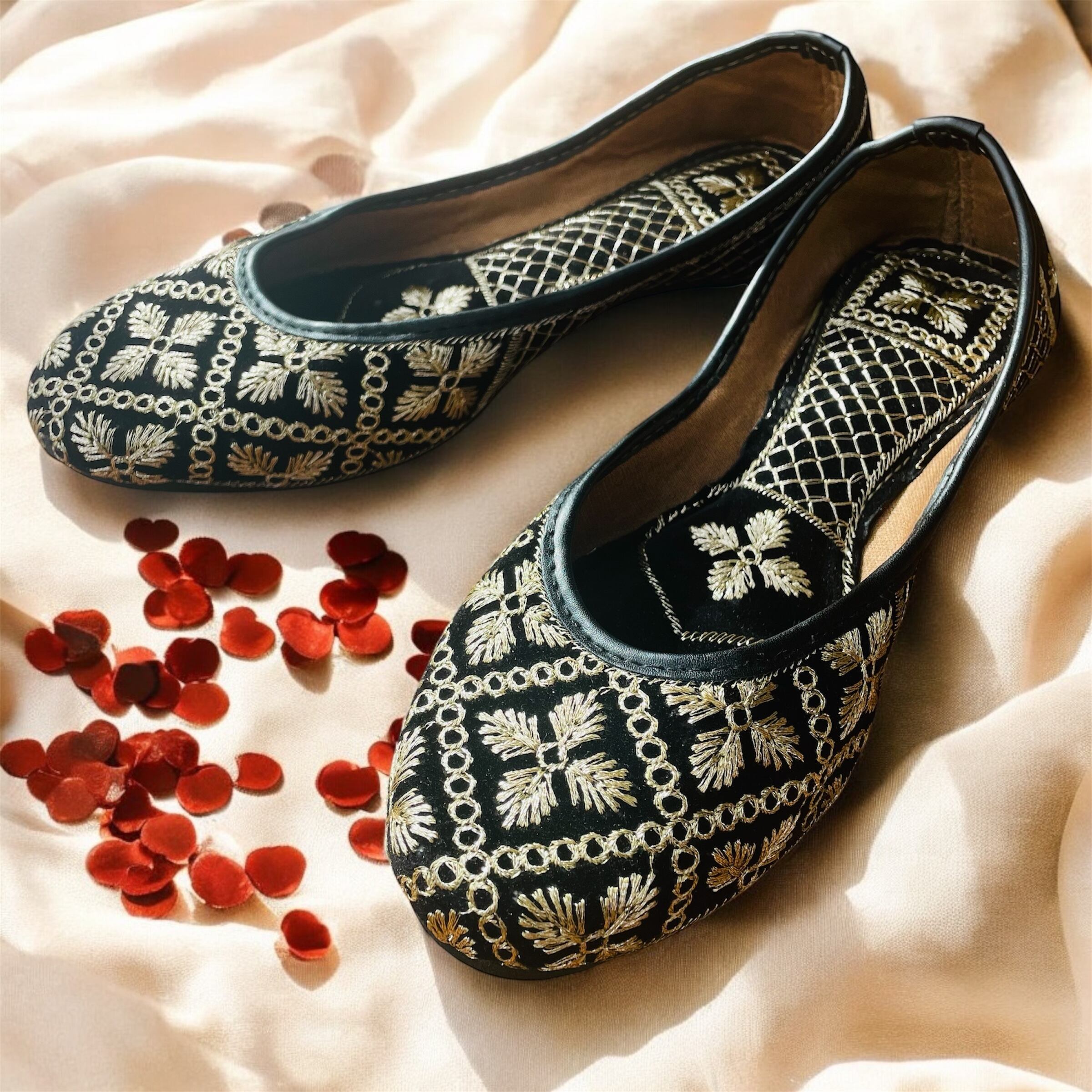 シックな黒に金糸が浮かび上がるこのジュッティは、