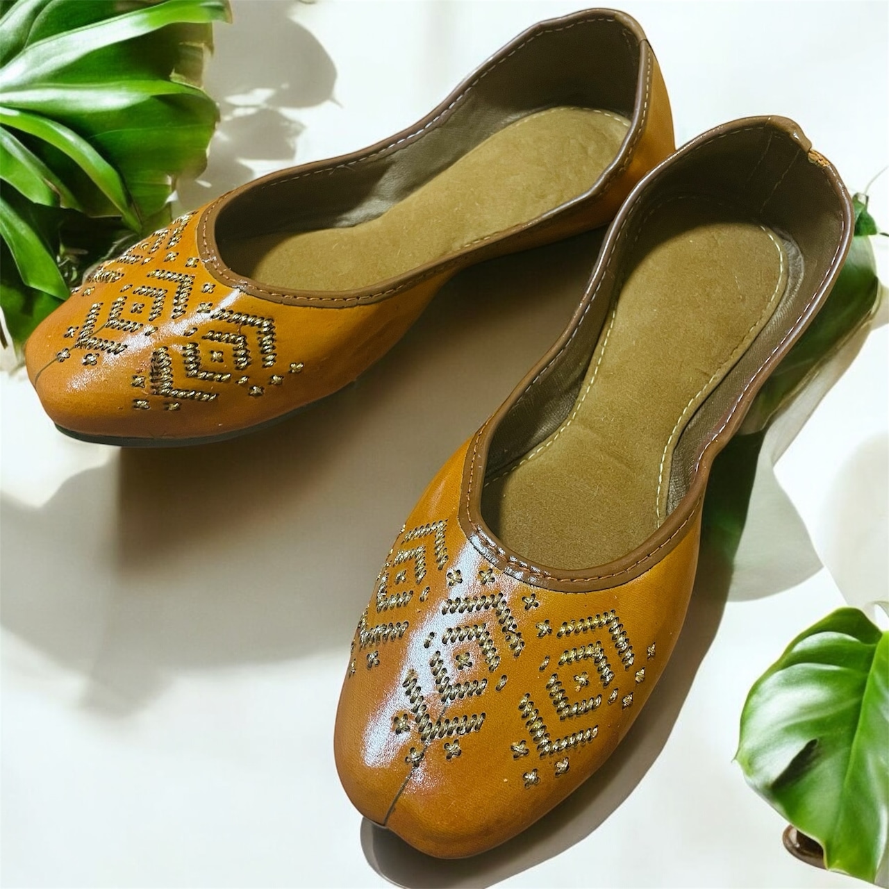 銀糸の刺繍で幾何学模様を描いた、明るくカジュアルなジュッティです。