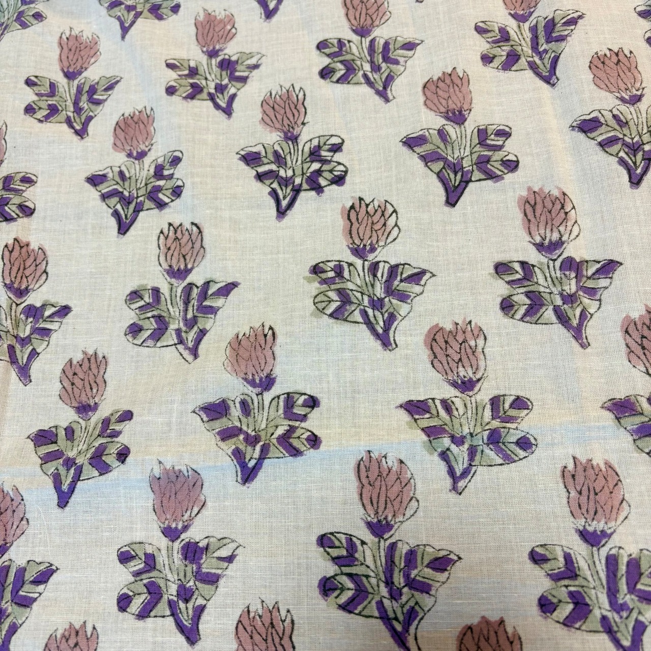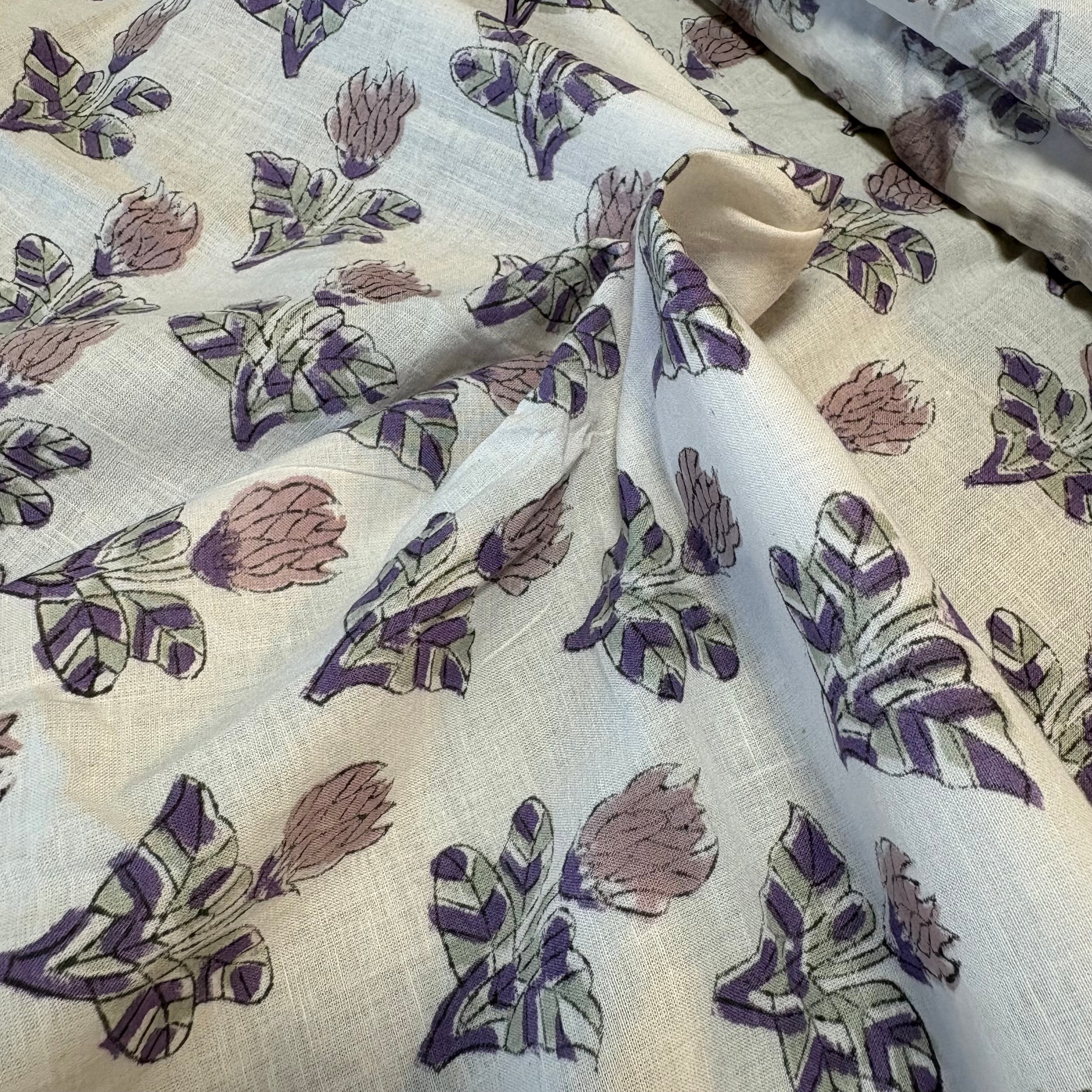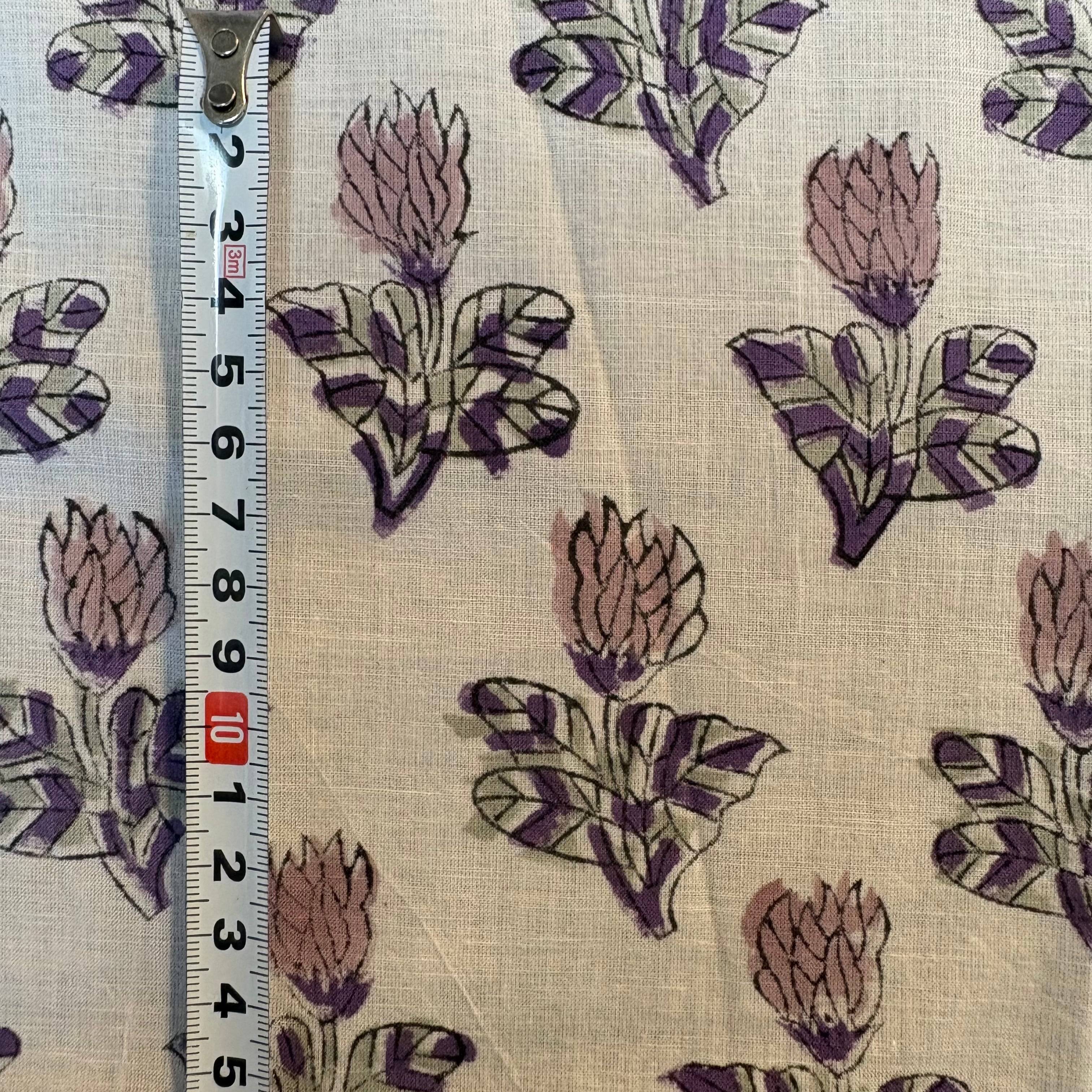 淡い紫の花が連なる、インドのブロックプリント生地です。