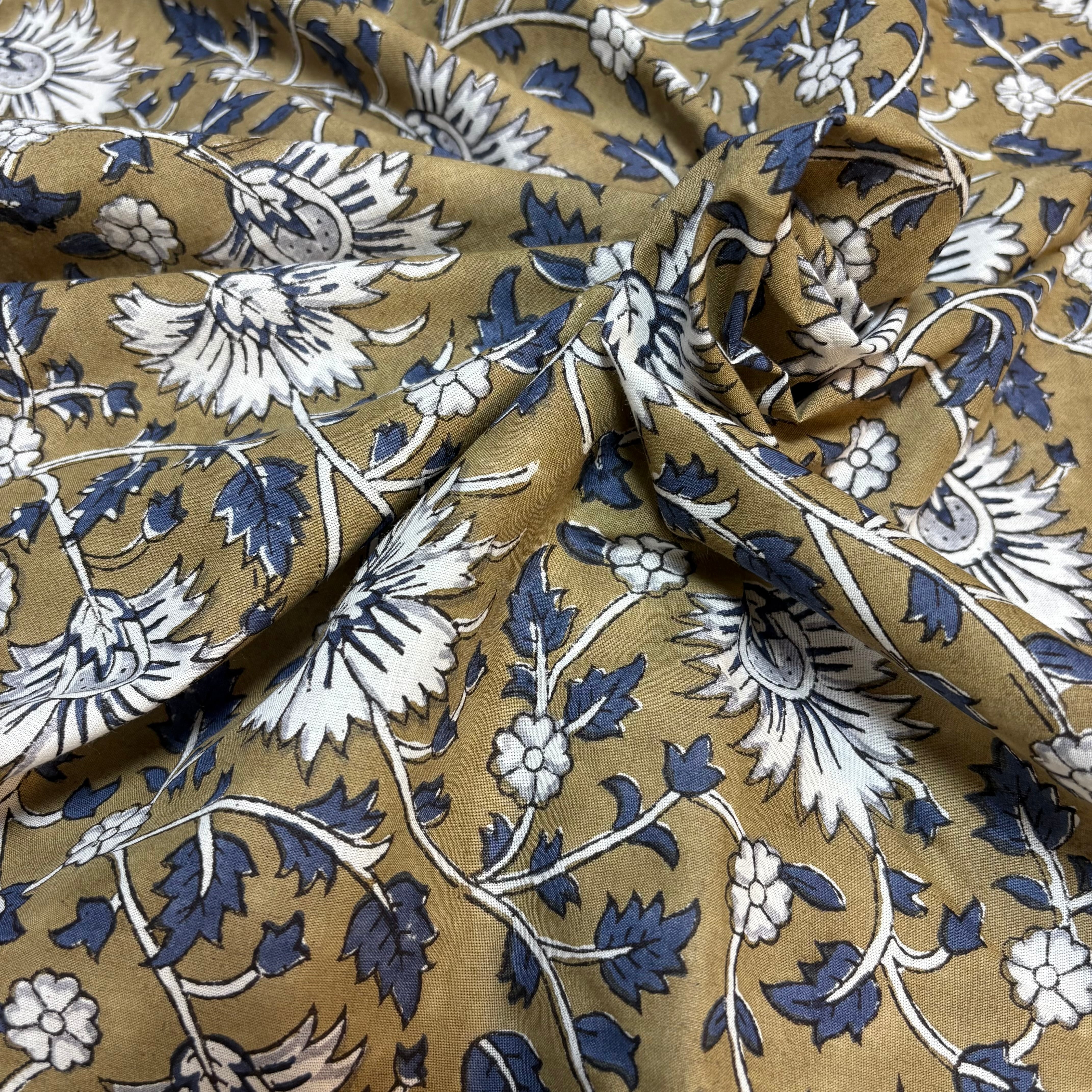 インドの職人による伝統的な手仕事「ブロックプリント」で仕立てられた、コットン生地です。