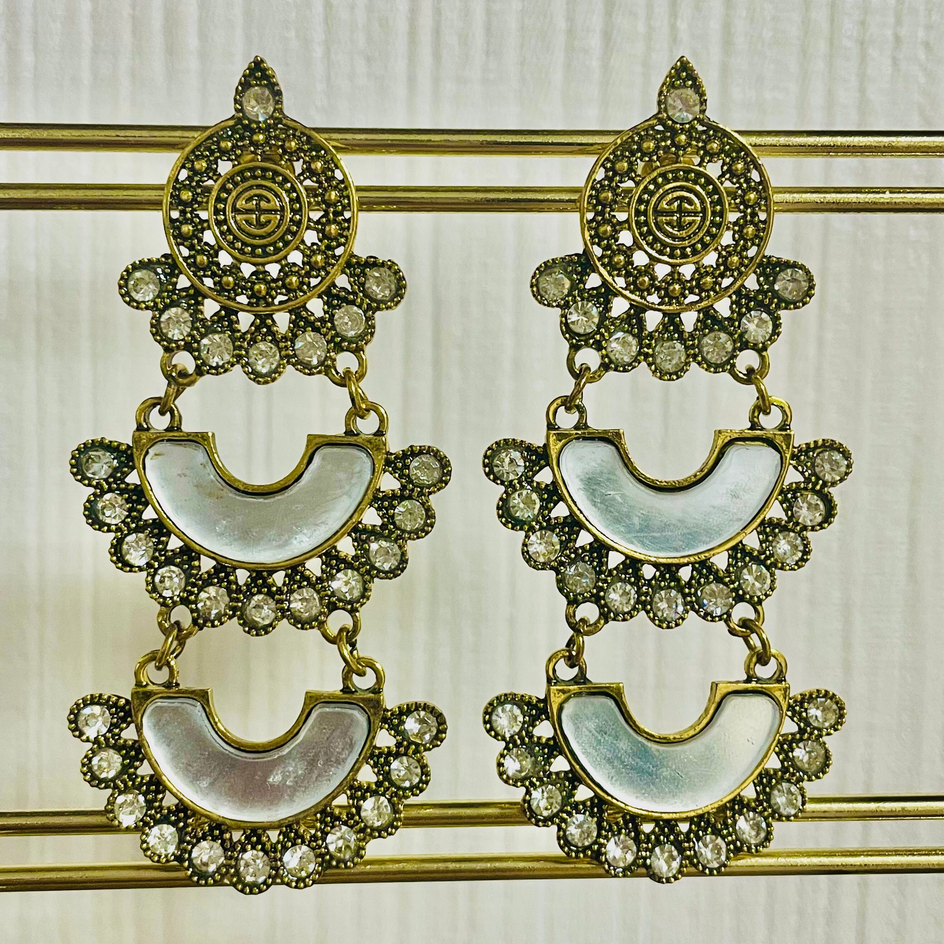 このピアスは、輝くストーンを使用することにより、特別感漂う仕上がりとなっています。インドから直接取り寄せた、美しいアクセサリーとして、あなたの華やかなスタイルを華麗に彩ります。夜の華やぎにふさわしい一品として、周囲を魅了する存在に。