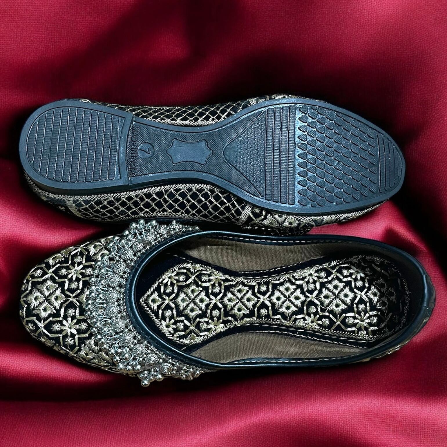 【モード】黒×金 刺繍 ジュッティ 揺れるチャームが可愛い